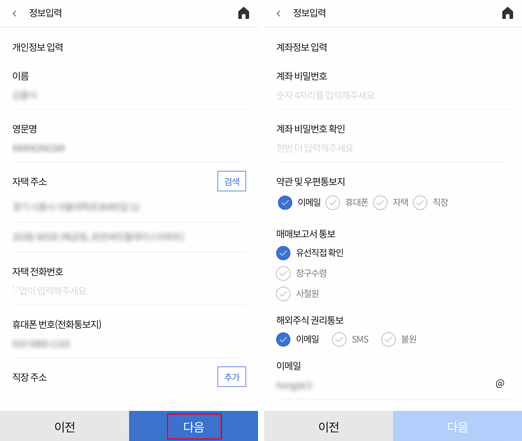 07. 개인정보 입력 입력칸에 있는 해당 정보들을 입력한 후 다음 버튼 클릭합니다. -